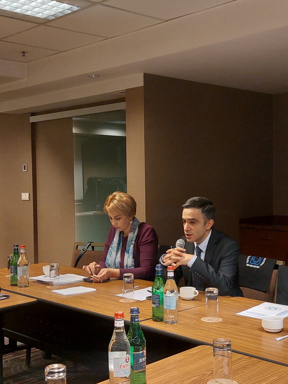 The second day of the Round Table was dedicated to the presentation and discussion of issues in the field of social partnership and labour protection policy in Armenia with the deputy-minister of the Ministry of Labour and Social Affairs of Armenia, as well as the representative of the Union of Employers.