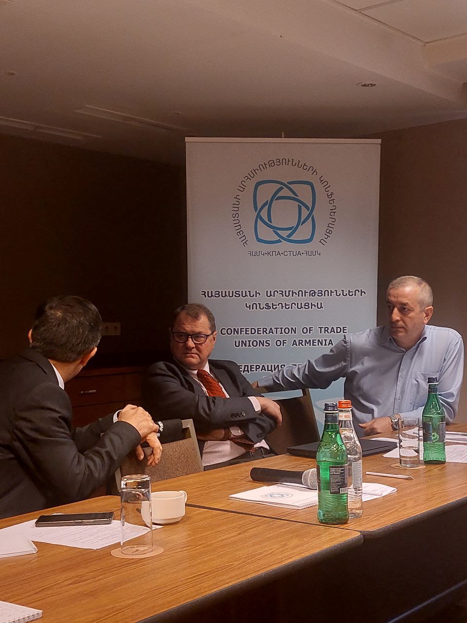 On December 8-9, a two-day round table was held at the Yerevan Place Hotel with the participation of ILO representatives, CTUA president and the presidents of branch republican unions, dedicated to the role of trade unions in upholding the right to safe and healthy working conditions through the effective application and promotion of the ratification of new fundamental ILO conventions in Armenia.