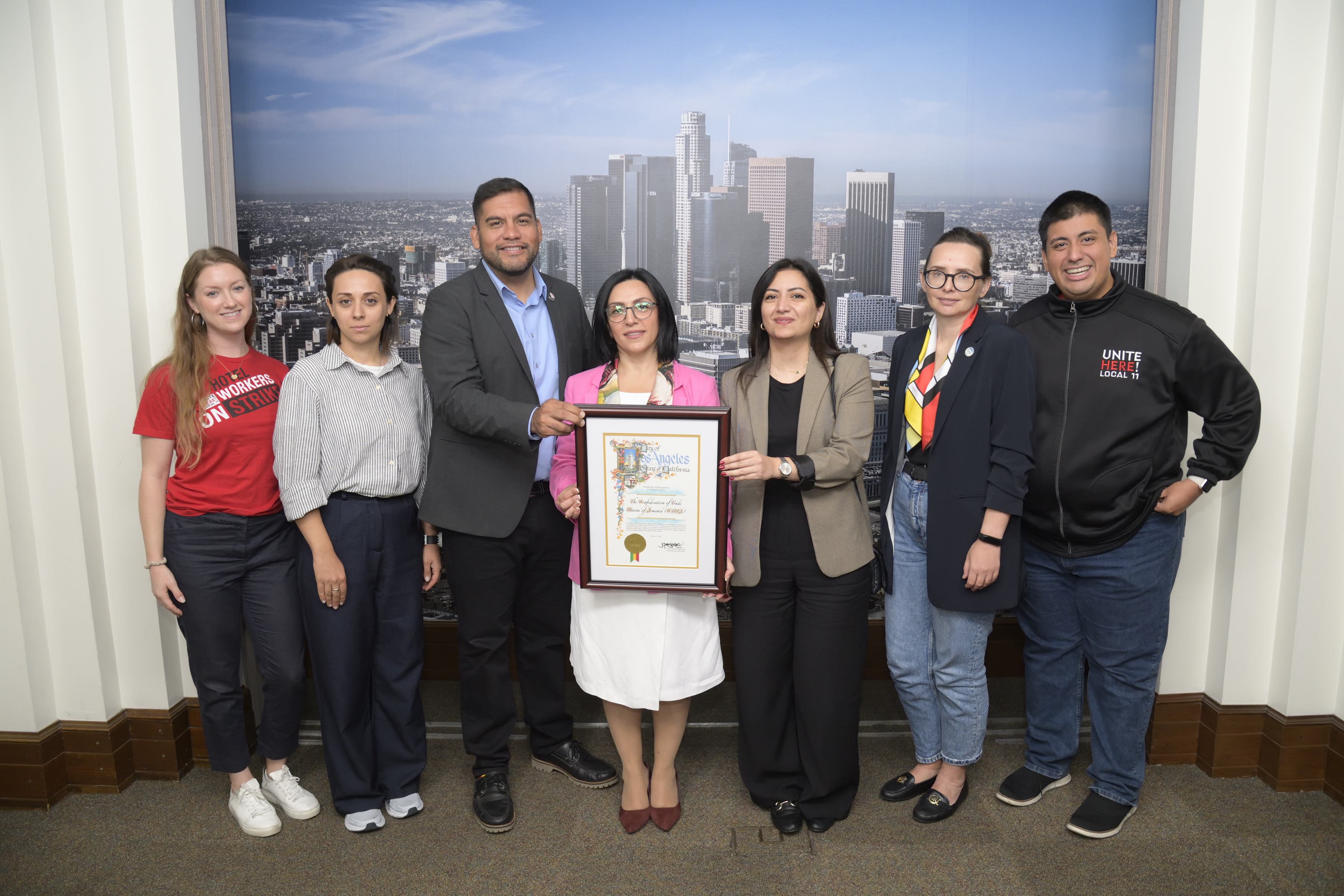 Городской совет Лос-Анджелеса в знак признания сотрудничества наградил Конфедерацию профсоюзов Армении почетной грамотой.