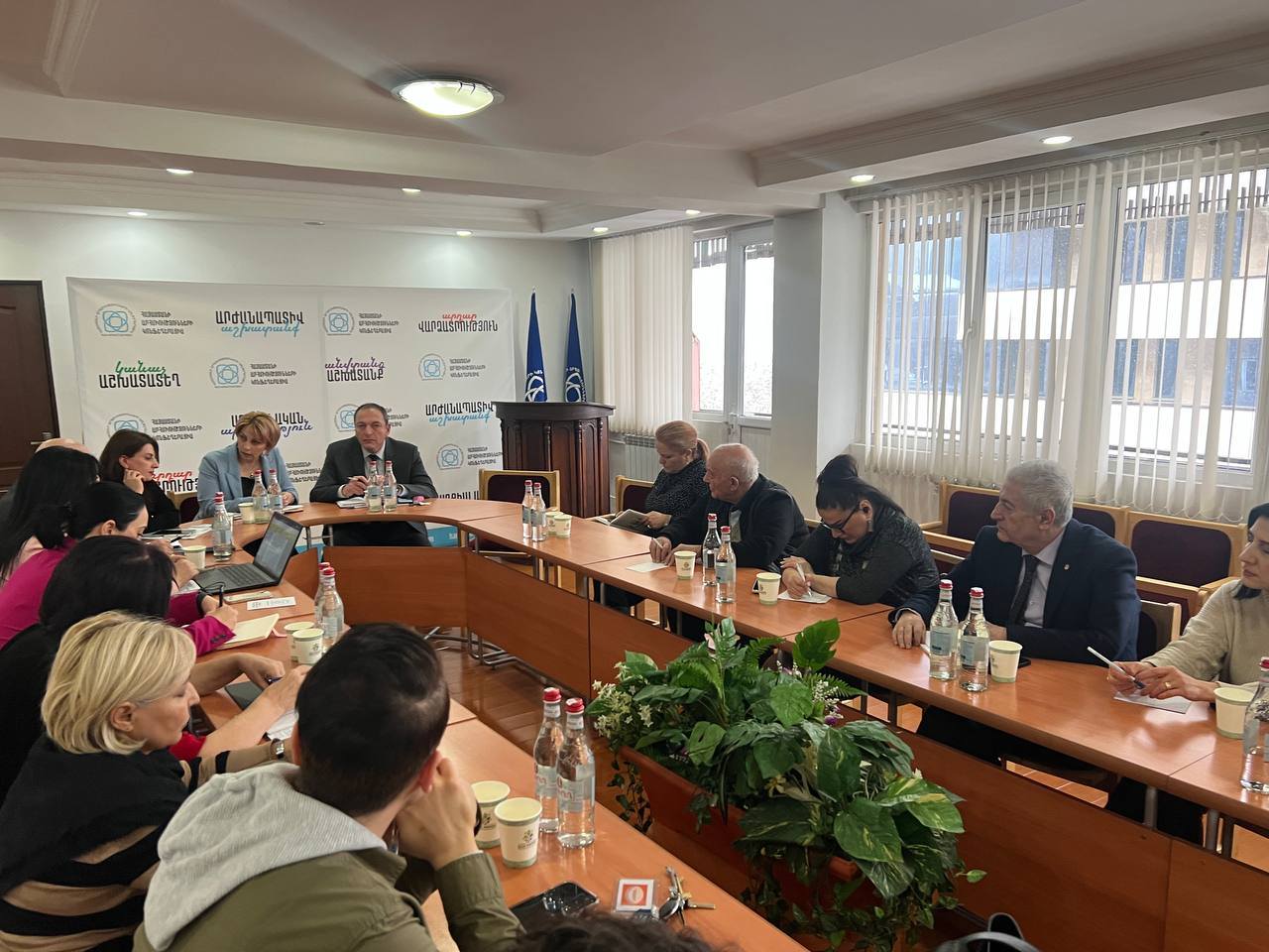 14 февраля в конференц-зале Конфедерации профсоюзов Армении состоялось открытое обсуждение проекта Закона РА «О всеобщем медицинском страховании», в котором приняли участие председатели отраслевых союзов-членов КПА, представители различных отраслевых организаций, члены постоянных комиссий КПА. Для представления проекта закона и предоставления разъяснений были приглашены руководитель Государственного агентства по здравоохранению Министерства здравоохранения Самвел Харазян и юридический консультант по разработке закона Изабель Абгарян.