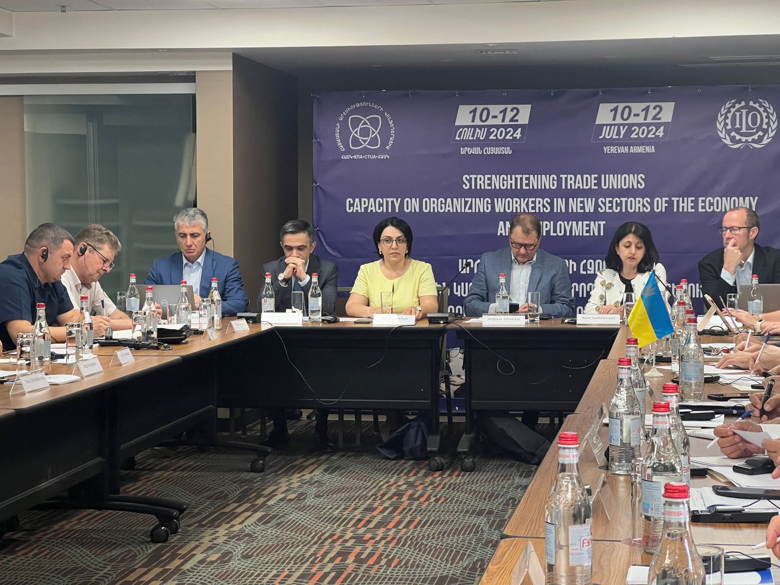 10-12 июля 2024 года в Ереване прошла региональная трехдневная рабочая встреча Международной организации труда на тему «Укрепление способности профсоюзов организовывать работников в новых секторах экономики и занятости», в которой приняли участие представители профсоюзов республик Армении, Грузии, Молдовы, Украины, Казахстана, Узбекистана и Таджикистана.