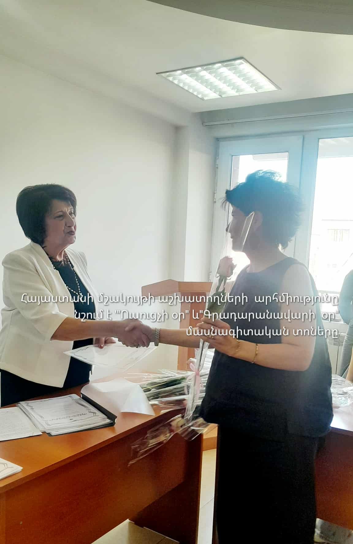 ՃՀՄ-ի նախագահը թվով 30 գրադարանավարի և ուսուցչի պարգևատրեց Հայաստանի մշակույթի աշխատողների արհեստակցական կազմակերպությունների Ճյուղային Հանրապետական միության պատվոգրով և 15 հազարական դրամով: